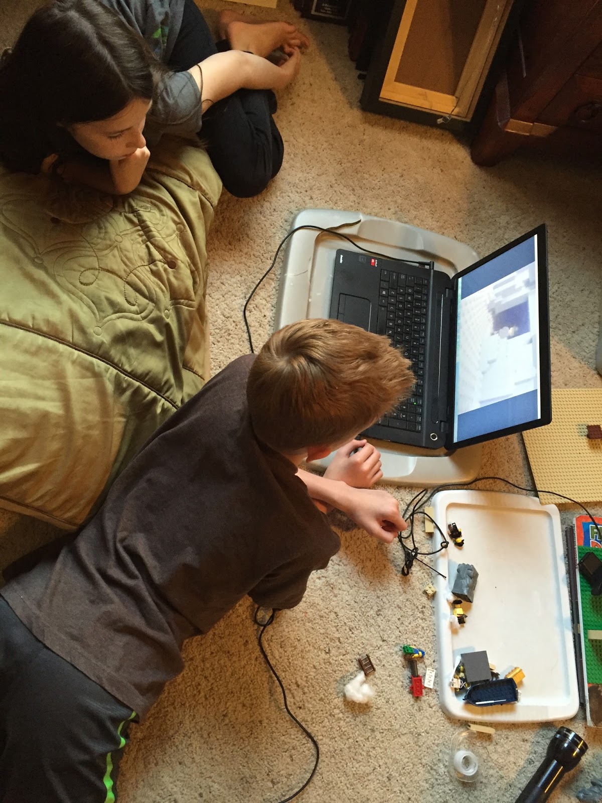 We got the complete kit which included everything he needed to get started. I installed program, Stopmotion Explosion Animator, and an audio program called Audacity from the CD onto my laptop, and he was off.